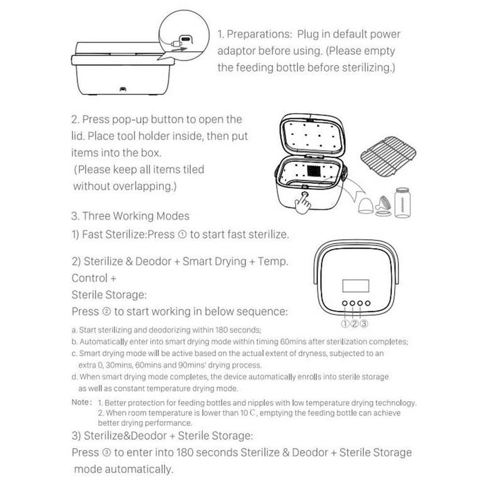 • The Multi-Purpose Cabinet incorpates an automatic Sterlize, Dry, deodourize and sterile storage function making it so simple to use.
