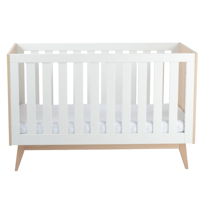 You're after a cot that features clean lines & subtle angles that create a calming yet elegant sanctuary. The hint of Scandi and timber accents allow the design of the furniture to speak for itself. Select the Oak option for a charming timber look, or keep it clean and subtle with White.