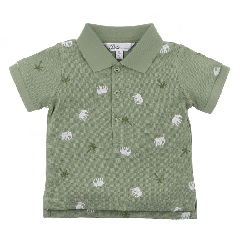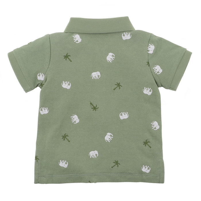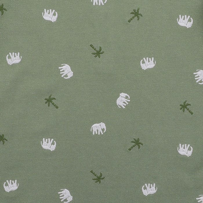 You're looking for a very "cool" polo for your little boy! This short sleeve polo top featuring a ditsy elephant and palm tree all-over embroidery, has front placket button opening and is a stylish piece to add to any little boy's wardrobe.