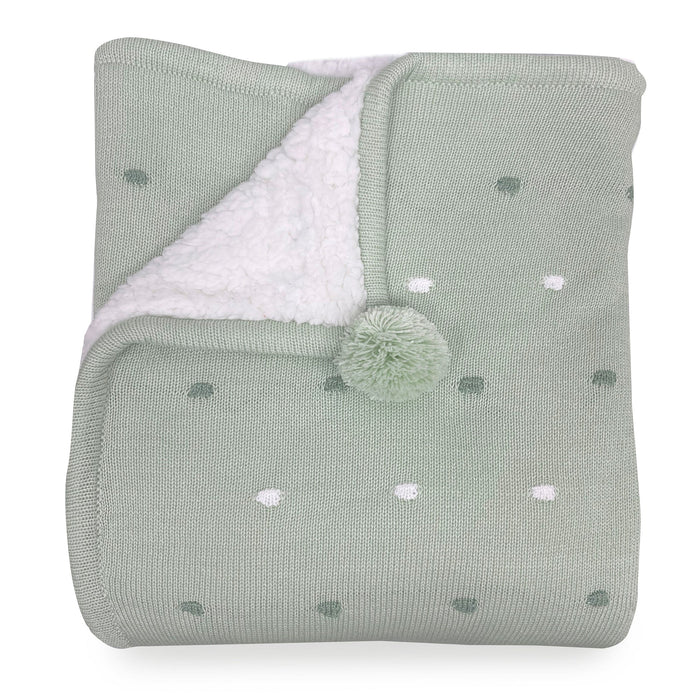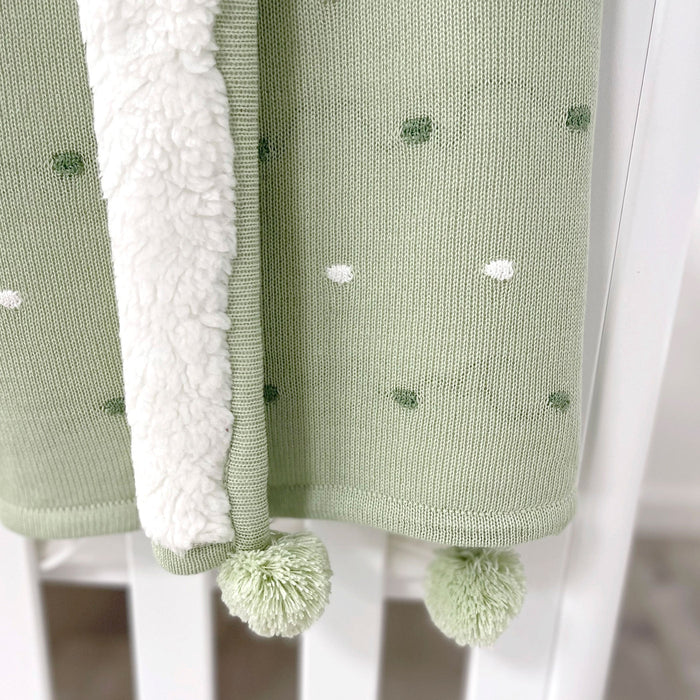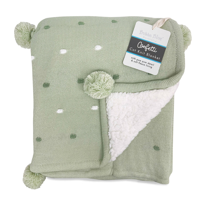 You're after cosy fleecy baby blanket. These timeless reversible soft knit & fleece baby blankets are perfect for use for bed time and outings, a soft surface for tummy time on the floor or for cuddle time. Featuring a stylish embroidered confetti dot front in Bamboo Viscose/Cotton Knit, and a super soft and cuddly fleece lining. With adorable corner pom pom details - this blanket is sure to become one of your baby’s favourites.
