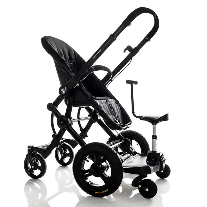 If you want to enable your single pram to carry both your baby and toddler. The comfortable seat with its soft handle is easily attached or detached from the board, and the board can be used both as the regular ride-on board, or with added comfort using the child's seat. The choice is yours!