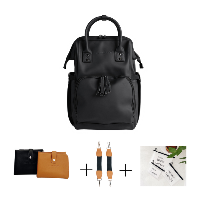 You want a nappy bag that doesn't look like a nappy bag. This backpack style is ideal for busy parents who need to keep their hands free to take care of their little ones. The different compartments that make up this bag make it a game changer, travelling with your mini me will be forever easier!!
