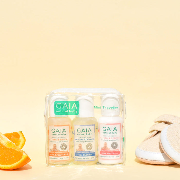 You've got a quick trip away coming up. Or maybe you want to make sure that no matter where you are, you always have the basics on hand? Say hello to GAIA Natural Baby Mini Traveller, a convenient kit that contains 3 bestselling babycare products in 50ml travel bottles.