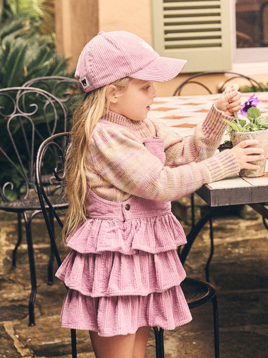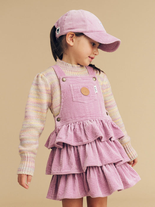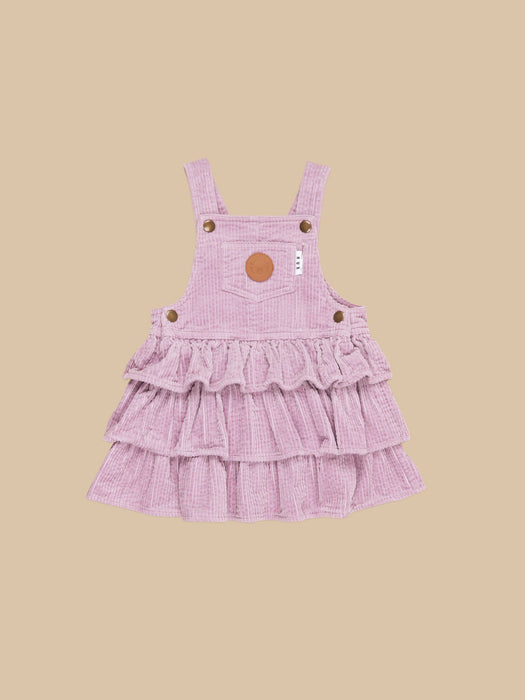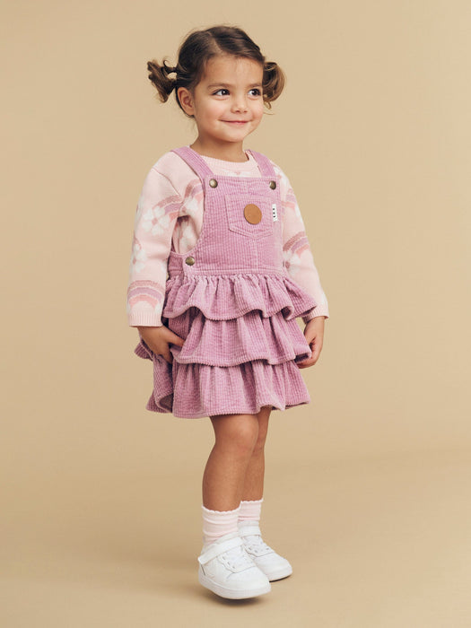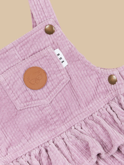 You're after a dress for all seasons! Perfect for layering with a t-shirt or sweater, this cotton cord tiered pinafore features a Huxbear patch on the front and adjustable snaps on shoulders for a comfy fit!
