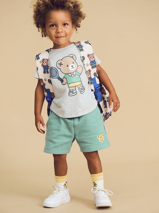 • Sporty, premium organic cotton terry short with tennis bear applique