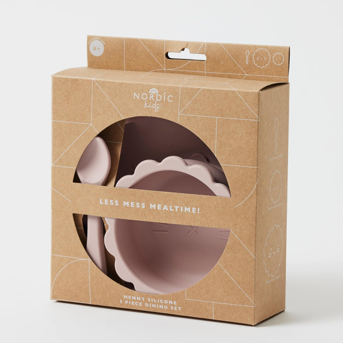 Made from high quality, non toxic silicone, this 3 piece dining set with suction plate, suction bowl and easy grip spoon is a mealtime essential for little ones learning to self feed.