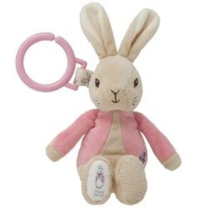 You're looking for a fun, tactile and engaging toy to keep your baby entertained. Watch Flopsy jiggle! The Jiggle toy is the perfect size for little hands to grasp and pull down, then watch them giggle with laughter as Flopsy jiggles back up. The toy comes with an attachable hoop making it perfect on-the-go companion. It can easily be attached to a pram, car seat or even a cot.