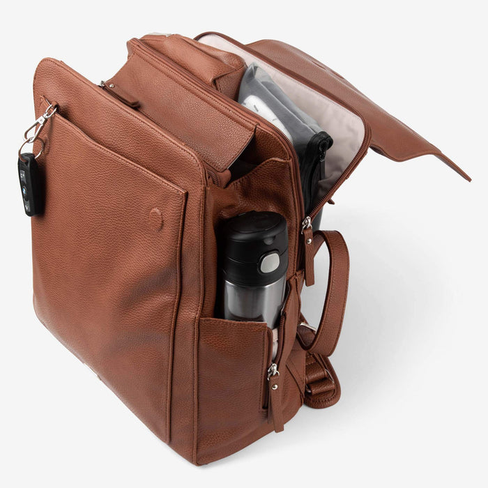 You have been looking for a stylish, chic backpack. The Emmy has been designed to be the perfect baby bag, with all the functionality we know you’ll need (as mums ourselves) plus heaps of handy features that you’ll love. Don’t be fooled by her sleek design – with two separate compartments plus a large front pocket, she’ll easy accommodate all you’ll need for a full days adventure. One of our favourite features is the large fold out compartment at the back with two ways to access it. Choose from opening it completely up for easy access to everything, or simply opening the double zips at the top to quickly grab something out. The perfect place to store all those change essentials when on the go!